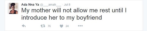 A Nigerian woman has taken to Twitter to announce her need for a boyfriend. She wants someone between the ages of 27-25 years.