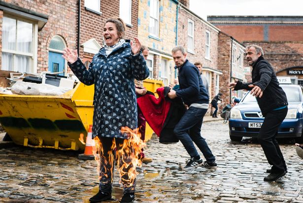 Corrie's Debbie Rush had to think hard before being set alight for a dramatic scene – because her husband nearly died of severe burns.