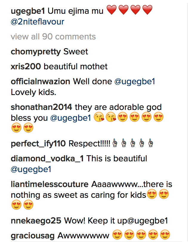 They are a one big family. Former beauty queen and singer Flavour's first babymama, Sandra Okagbue shared this photo of herself with her daughter and Anna Ebiere's daughter who she called her twins.