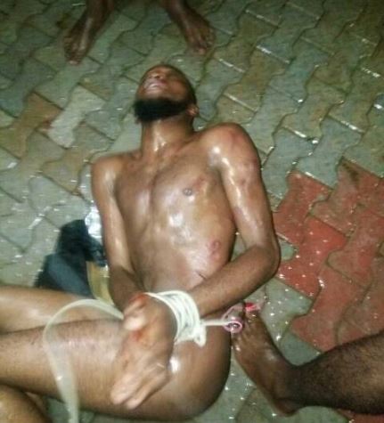 They were apprehended by some neighbours while they were trying to force the door open. Two were caught as all effort to force their way-out proved abortive. The other two escaped immediately the door was opened from outside.