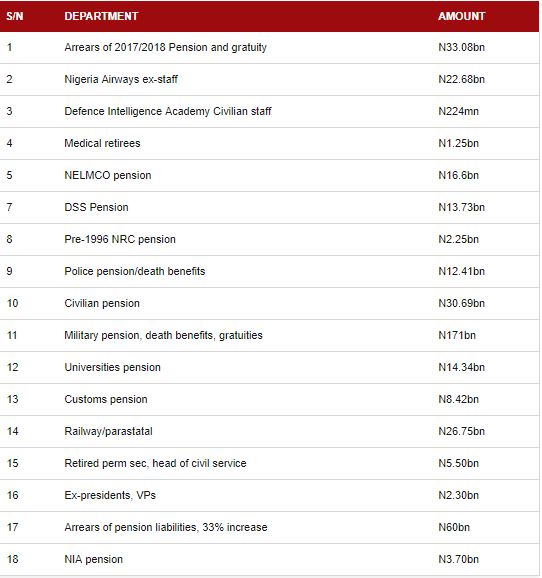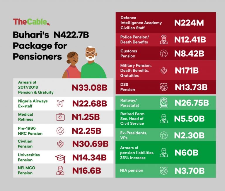 The proposed 2019 budget submitted before the national assembly by President Muhammadu Buhari earmarks N422 billion for pensioners.