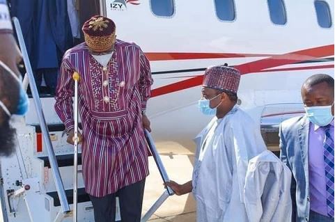 Amaechi was seen in a viral photo walking with the aid of crutches during the commissioning of an orphanage home and Arabic School in Kaita Local Government Area of Katsina State.