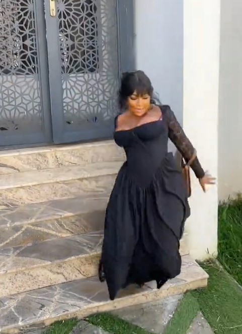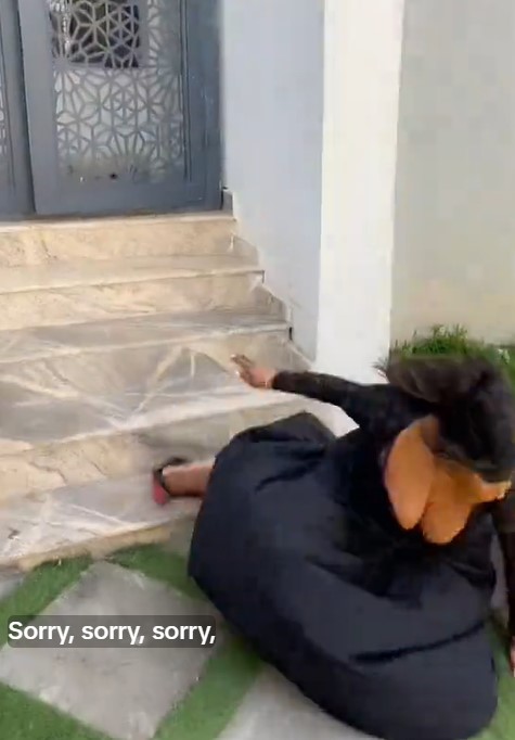 A Nigerian lady experienced an unfortunate mishap during a video shoot when she tripped over her heels while descending the stairs.