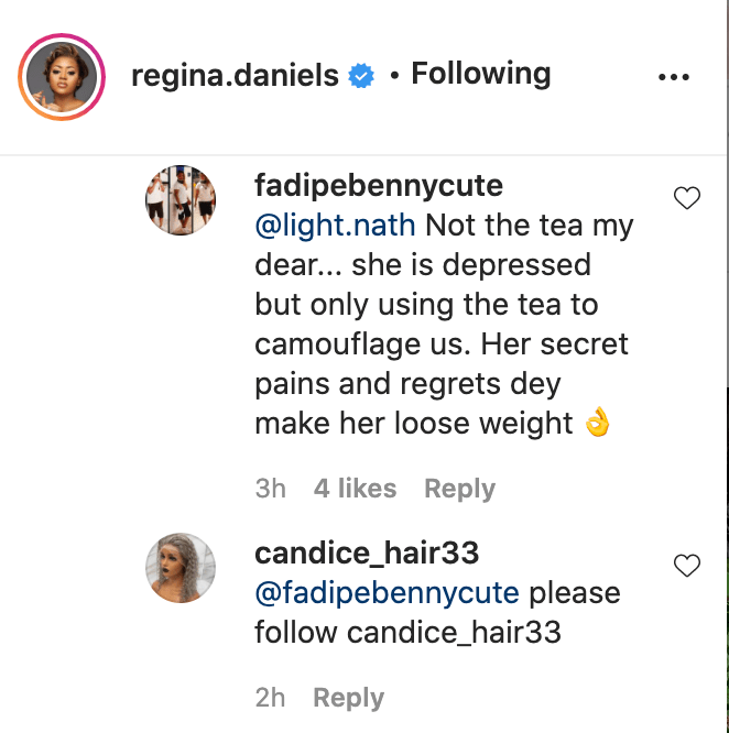 Meanwhile, some fans on social media are wondering why Regina Daniels has lost weight after she shared new photos.